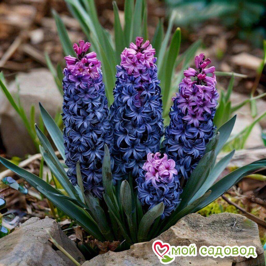 Садовые гиацинты принадлежат к семейству Liliaceae. Родом растение из стран Ближнего Востока и Средиземноморья. В естественной среде они встречаются на каменистых участках и на скалистых склонах. Выращенные из луковиц экземпляры могут достигать 15 – 30 см в высоту. Цветочные стебли образуются мощные и коренастые. Листья блестящие и длинные, размером 20 – 30 см. Они густо размещены в нижней части стебля. Цветки колоколообразной формы.