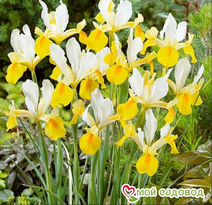 Не менее интересными считаются голландские и германские ирисы Бронз, Вайт, Тукседо, Эдит Волфорд и другие.