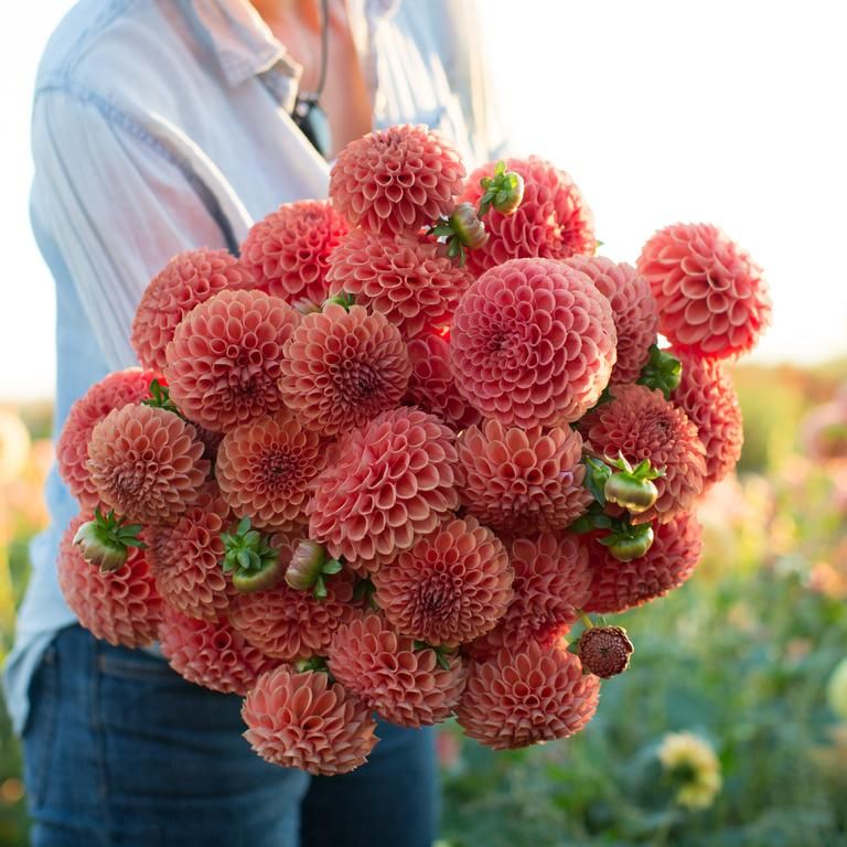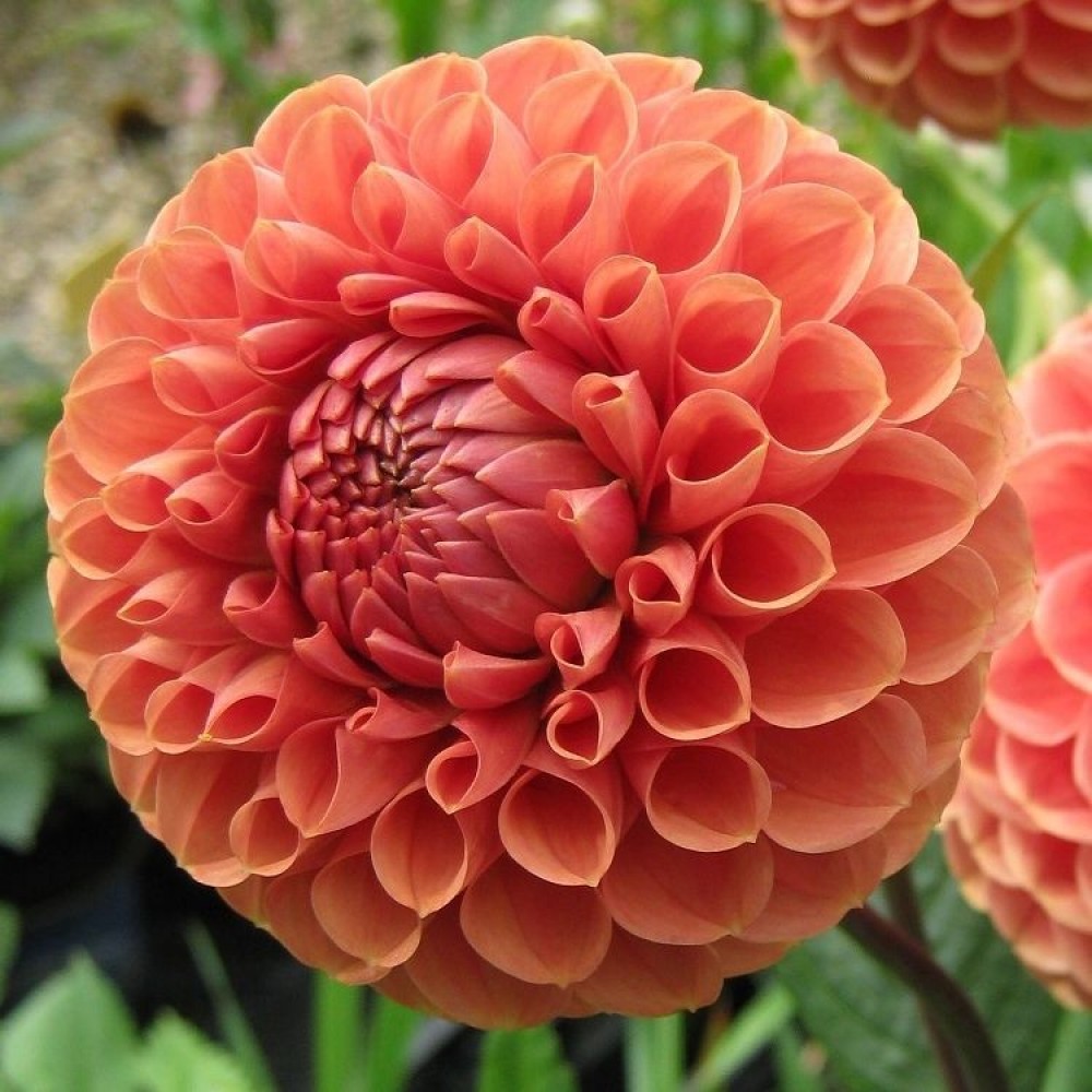 Георгина относится к семейству астровых. Ее цветки имеют пышную форму с многочисленными лепестками, напоминающими розы или пионы. Размеры цветков могут варьироваться, и в среднем достигают 8 – 20 см в диаметре. Лепестки со скругленными или тупыми кончиками. Корзинки полумахровые или немахровые. Окрас пастельный, персиково-оранжевый. Куст сам по себе достаточно компактный (высоты около 40 – 120 см).