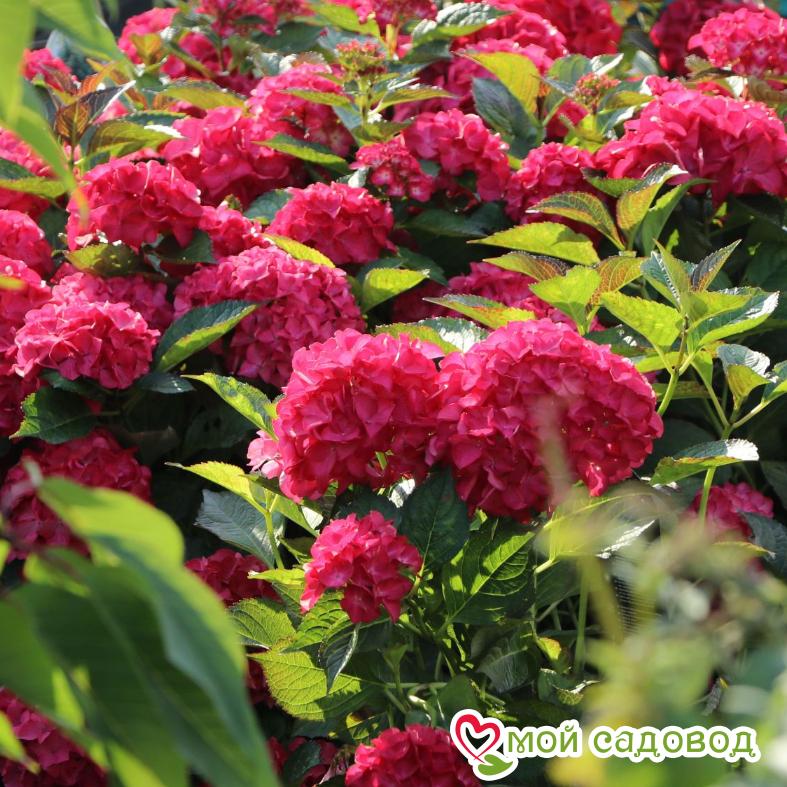 Гортензия крупнолистовая — красивый декоративный кустарник с прямостоячими побегами. Листья простые, яйцевидные, ярко-зеленые. Цветки крупные, шаровидные, до 20—25 см в диаметре, образуются на концах побегов. Цветет в июле-августе. В зависимости от кислотности почв можно менять окраску цветков. Растет быстро, теплолюбива, требовательна к почве и влаге, не переносит извести. Мирится с небольшим затенением, маломорозостойка (до -18 град). Требует укрытия на зиму. Альпенглюхен — куст высотой до 125 см. Цветки обычно красные, либо тёмно-розовые. На кислых почах окраска остаётся красной, либо розово-красной. Цветет в июне-июле. Один из лучших сортов с красными цветами. В нашем интернет-магазине вы сможете купить Гортензия Так же возможно вас заинтересуют Гортензия крупнолистная Аиша и Гортензия крупнолистная Блаумайзе .