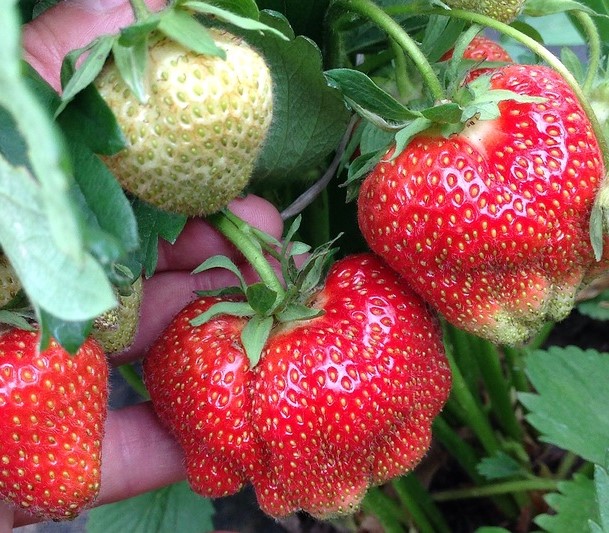 Сорт клубники Гигантелла был выведен на территории Голландии. Голландские селекционеры добились получения качественного плодового растения благодаря скрещиванию крупноплодных гибридов клубники. Основной задачей селекции было создание максимально устойчивого сорта, дающего плоды больших размеров. Характерной чертой, которая отличает данный сорт от других разновидностей клубники, является крупный размер спелых ягод и их отличные вкусовые характеристики. Кроме этого, при соблюдении рекомендуемых приёмов агротехники, клубника Гигантелла даёт обильный урожай и отлично переносит зимовку. Благодаря всем этим качествам данный сорт относится к элитным и выращивается не только на мелких участках для личных нужд, но и в промышленных масштабах. Подробное описание Гигантеллы — далее в статье. Растения данного сорта быстро растут, поэтому в короткие сроки достигают больших размеров и сразу становятся заметными на грядке. Плоды выглядят очень аппетитно, а самые крупные из них могут иметь размеры небольшого яблока. Кожица спелых плодов плотная и шершавая, окрашена в тёмно-красный цвет. На её поверхности расположены выпуклые крупные семена белого или жёлтого цвета. Мякоть клубники очень сочная и имеет плотную структуру. Она окрашена в матовый красный цвет и по вкусу напоминает сладкий ананас, источая характерный клубничный аромат. Посадка и уход за клубникой Посадка: осенью (с середины августа до середины октября) и ранней весной Освещение: яркий солнечный свет Почва: легкая – суглинок, супесь, чернозем или лесные, богатые органикой грунты с водородным показателем pH 5,7-6,2 Полив: утренний, с конца апреля – один раз в 10-12 дней, расходуя на каждый м² участка 10-12 л воды Подкормки: минимум три раза в год: ранней весной, в период бутонизации и в августе Обрезка: когда листья начнут желтеть, покрываться пятнами и сохнуть, их обрезают Размножение: усами (розетками), делением куста