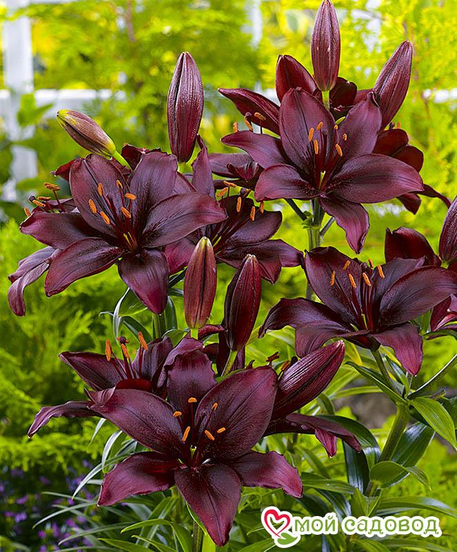 Эта лилия станет изюминкой вашего сада. Ее крупные цветки роскошной темно-бордовой (а порой почти черной) окраски с оранжевыми тычинками выглядят очень эффектно как на клумбе, так и в букетах.