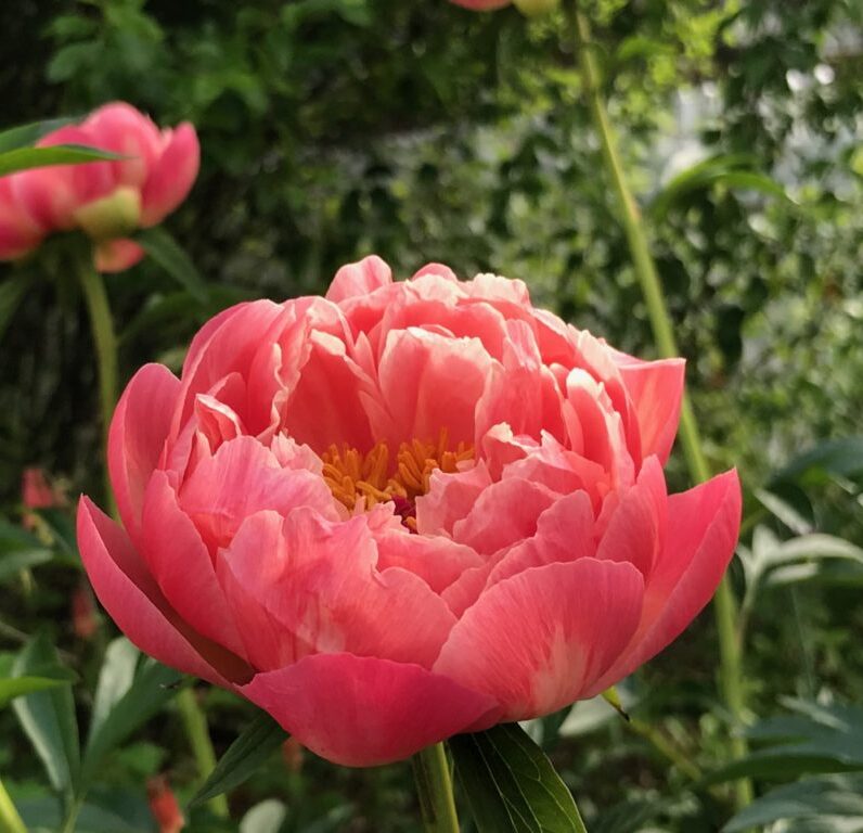 Пион Корал шарм — компактное травянистое растение высотой 0,8-1,1 метра. Побеги хорошо развитые, прямостоячие. Листья типичной для пионов формы — тройчатые с прожилками. Цвет листовой пластины темно-зеленый, поверхность глянцевая. Главная привлекательность сорта в окраске и форме соцветий. Они довольно крупные — диаметром 16-21 см. По форме чашеобразные и полумахровые. Цвет лепестков в процессе роспуска бутона меняется от темно-кораллового до светло-лососевого. Место посадки Для посадки пионов понадобится защищенное от ветров место с хорошей освещенностью. Сорта светлой окраски, а также пионы с простыми и полумахровыми цветками можно посадить на частично затеняемом участке, это продлит цветение и защитит цветы от выгорания. Почва для посадки Залог успешного цветения пиона в будущем — это подготовка почвы! 1. Подготовка ямы — 70*70 см на скудных песчанистых и торфянистых почвах — 50*50 см на плодородных, окультуренных почвах. ХРАНЕНИЕ ДО ПОСАДКИ: После получения посылки, рекомендуем вскрыть пакет и осмотреть корневище. Почки должны быть плотные и розового цвета. Так же уделите внимание самому корневищу, все сомнительные, потемневшие, сморщенные части удалите, а места среза обработайте зеленкой или залой. Если почки еще не тронулись в рост, а высаживать в открытый почву рано, советуем Вам хранить корневище в холодильнике, обязательно оставляя его в пакете с торфяной смесью или в коробке под снегом. Если почки успели раскрыться это не критично, сохранить до посадки их так же возможно, высадите корень пиона в большой просторный горшок или в любую другую ёмкость.