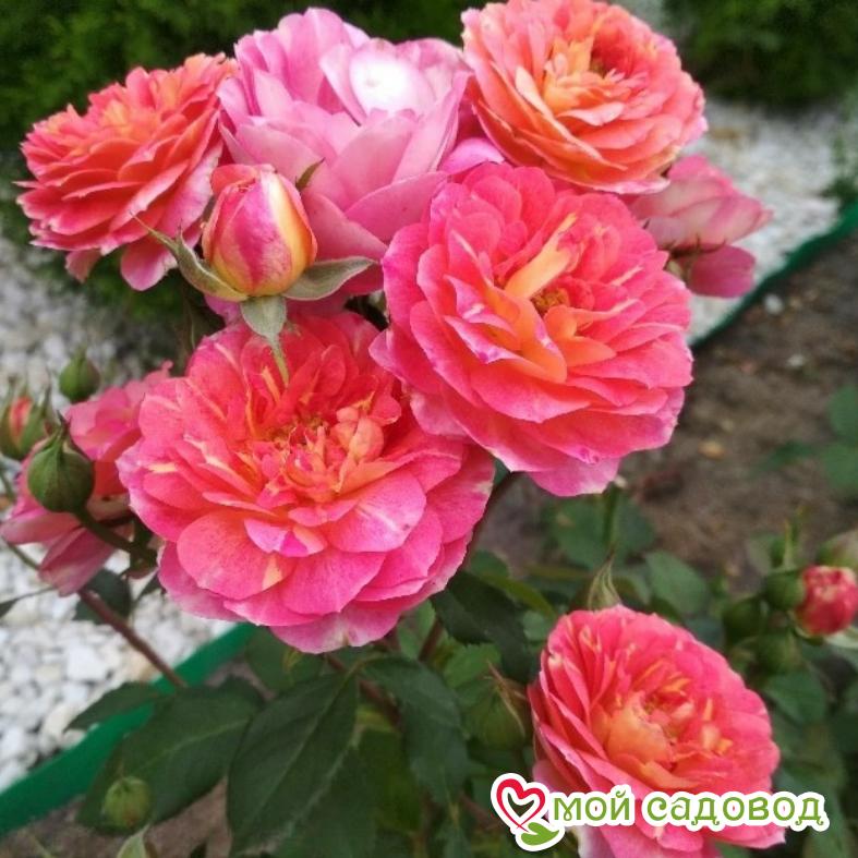 Роза Лес Потес де Бедрос Эта потрясающая роза выведена в 2015 году во Франции. Она очень вынослива и нетребовательна к условиям произрастания. Благодаря этому её полюбили многие садоводы по всему миру. Справиться с посадкой и выращиванием саженцев сможет даже начинающий розовод. Ботаническое описание Лес Потес де Бедрос – шраб, отличающийся обильным цветением. Это теневыносливый, среднерослый куст с мощными побегами. В диаметре он достигает 70 см, а в высоту – около 1,2 м. Листья у рассады матовые, среднего размера, зелёной окраски. Цветки крупные (шириной примерно 10 – 12 см), чашевидной формы, махровые. Состоят они из 40 лепестков. Окрас красивого розового оттенка. Тыльная сторона лепестков светло-лимонная. Все цветы собраны в кистевидные соцветия по 5 – 10 штук. Роза источает выраженный аромат. Длится период цветения с июня до самых заморозков. Применение Выращенная в питомнике роза Лес Потес де Бедрос отлично украсит границу розария или цветника. Она идеально гармонирует с цветами разных оттенков. Её используют для оформления бордюров или в качестве зелёной изгороди. Некоторые цветоводы сажают этот сорт прямо в контейнеры. Также растение применяют при создании букетов. Агротехника Розам Лес Потес де Бедрос будет комфортно на защищённом от сквозняков и ветра, хорошо освящённом участке. Высаживать выращенную в питомнике рассаду на клумбу рекомендуется осенью. В этом случае корневище успеет окрепнуть к наступлению заморозков, не расходуя силы на закладку бутонов и выгонку побегов. Посадочная лунка готовится таким же способом, как для всех роз. Оптимальные размеры – 50×50 см. Почвенная смесь необходима рыхлая и плодородная. Шраб положительно отзывается на органические удобрения и низкий уровень кислотности грунта. Уход за саженцами не сложный. Полив им нужен умеренный, тёплой и отстоянной водой. После процедуры важно разрыхлить землю вокруг кустов, чтобы не образовывалась корка. Розы Лес Потес де Бедрос обильно и длительно цветут после внесения фосфорно-калийных подкормок. Удобрения желательно использовать 2 раза за сезон — в осенний и весенний период. Максимум внимания при выращивании этого сорта уделяют обрезке. Весной удаляют поражённые болезнями, неправильно растущие и подмёрзшие ветви. Главная задача – оставить не менее 5 крепких, симметрично размещённых побегов, на которых сформируется по 7 – 8 вызревших глазков (остальное надо убрать). Сильная обрезка розам Лес Потес де Бедрос не нужна – она способна ослабить куст. Летняя стрижка осуществляется с разными целями. Одна из самых важных – стимуляция повторного образования бутонов. Для этого избавляются от увядших соцветий вместе с частью побегов. Помимо этого, летом проводят формировку саженцев, их омоложение, лечение, пробуждение «слепых» побегов. В обязательном порядке удаляют дички и лишние ветки, которые загущают крону. Осенью стрижку осуществляют перед укрытием молодой рассады на зиму. Как вариант, можно полностью пригибать побеги к грунту и укрывать разными материалами. Также в осенний период обрезают несозревшие (не одревесневшие) макушки веток. В них сохраняется много влаги, что сопровождается обмерзанием куста. С этой же целью летнюю обрезку завершают в последних числах июля – чтобы не активизировать рост новых побегов. В это время убирают все бутоны, листв
