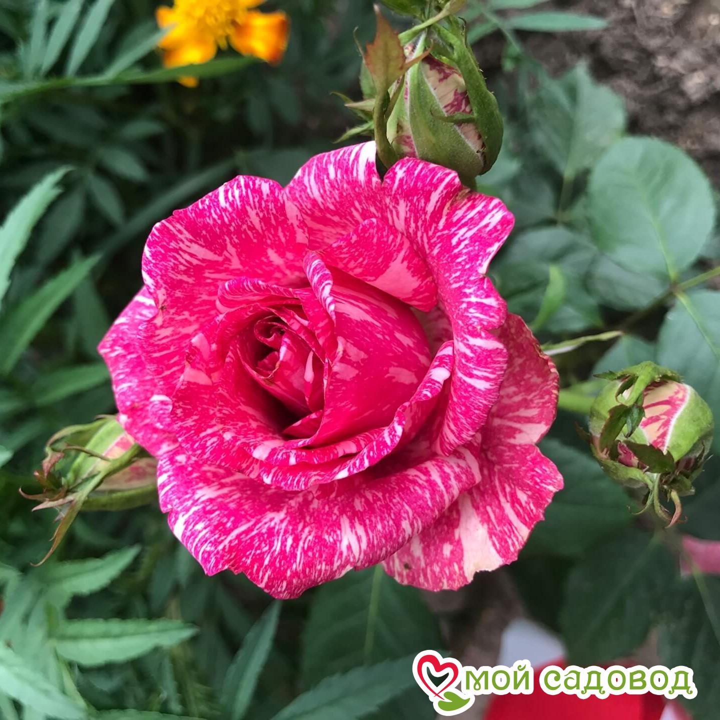 Роза Пинк Интуишн – достаточно редкий сорт, благодаря своей необычной расцветке (нежно-розовая с малиновыми полосами), которую нельзя ни с какой перепутать, пользуется большой популярностью среди садоводов. Бокаловидные бутоны, размером 10-12 см, распространяют приятный аромат. Хорошо переносит низкие температуры.