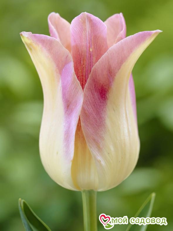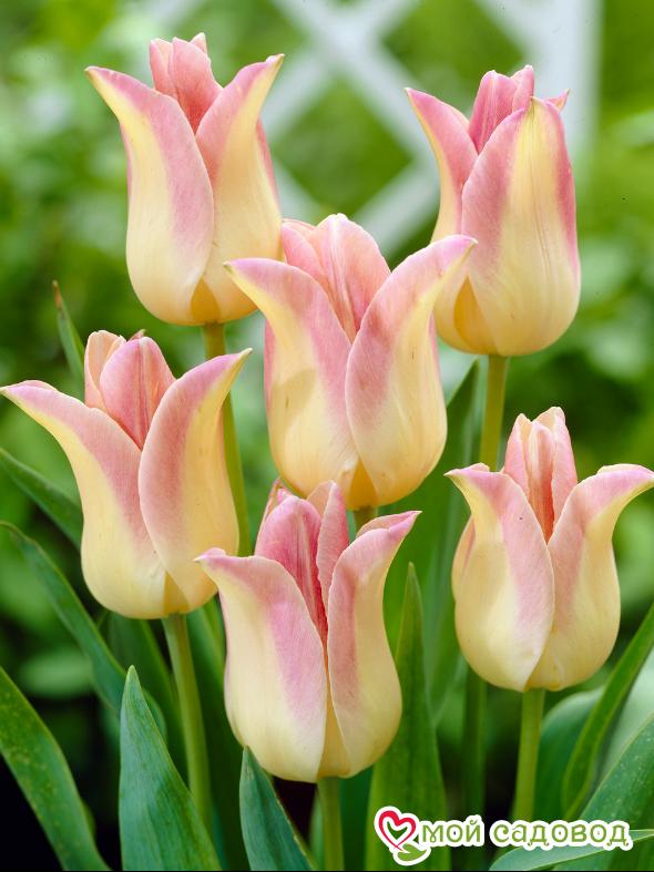 Очаровательный сорт тюльпана Элегант Леди выделяется на смешанной клумбе с тюльпанами особым изяществом и шармом. Причудливая форма бокала – внизу лепестки образуют широкую чашу, в средней части они плавно переходят в узкое горло, вверху цветок расширяется. Каждый лепесток изящно отгибается наружу. Окраска тюльпана отличается нежностью – неведомый художник смешал акварельные оттенки розового и слоновой кости. Нежно, трогательно, эффектно.
