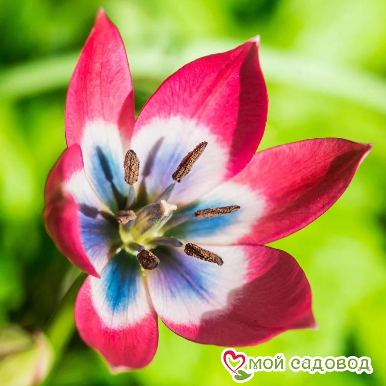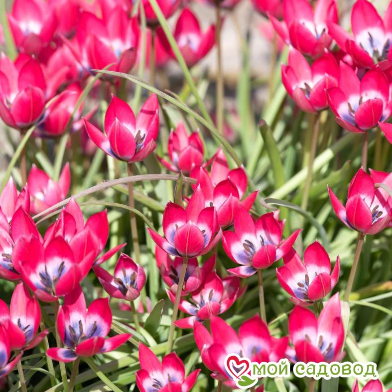 Читать далееЭтот низкорослый сорт (цветонос высотой 10-15 см) полон очарования и изящества. Заостренные лепестки образуют правильную звезду, а в глубине бутона тюльпан имеет синее основание, плавно переходящее в розовый, затем насыщенно малиновый цвет.