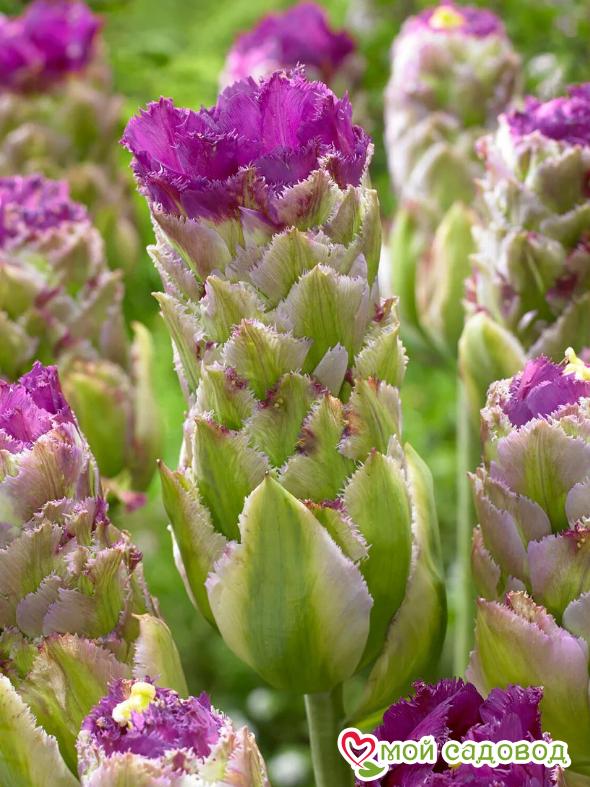 Тюльпаны не только изумительны по внешнему виду, но и абсолютно неприхотливы. Среди великолепия разнообразных сортов Пурпл Тауэр выделяется высоким многоярусным бокалом зеленого цвета с густыми малиновыми лепестками, бахромчатыми по краю. Роскошное жабо красавца-щеголя, вот такое впечатление оставляет этот цветок. 1. Выращивание аналогично агротехнике культуры тюльпанов 2.Укрытие на зиму не обязательно, сорт отлично переносит зимовку. 3.Декоративность высокая, очень эффектный тюльпан для сада и срезки. В нашем интернет-магазине вы сможете купить Тюльпаны Так же возможно вас заинтересуют Тюльпан махровый Дрим Тач и Тюльпан Сенсуал Тач .
