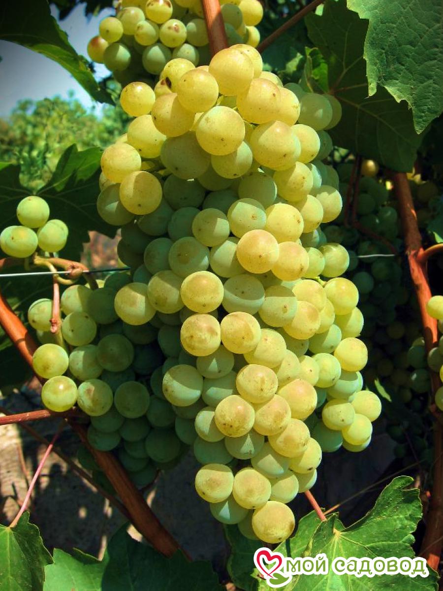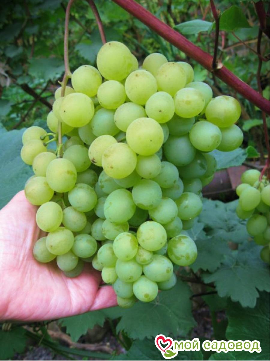 Виноград плодовый Марсианин — Среднего срока созревания, грозди крупные и средние, ягоды зеленовато — желтого цвета, крупные, вкус кисло — сладкий , приятный, гармоничный. Содержание сахаров 15-16,5%.Сорт зимостойкий , с рано вызревающей лозой. Марсианин- сорт очень перспективный для северян. Магазин Мой Садовод, рекомендации по уходу Уход за виноградом сводится к регулярным поливам в сухую погоду, подкормкам и формированию куста. Для подкормки используют минеральные и органические удобрения (перепревший навоз, компост). Ранней весной кусты виноград поливают полным минеральным удобрением, растворенным в воде, перед цветением такую подкормку повторяют. Перед созреванием вносят фосфорно-калийные удобрения, а после сбора урожая проводят подкормку калием для повышения зимостойкости растений. Кроме того для лучшего вызревания лозы рекомендуется удаление пасынков и прищипывание верхушек в начале сентября. Формирование куста Винограда. Для формирования виноградных кустов необходимо установить надежную опору. Самая простая представляет собой два столба с несколькими рядами проволоки между ними. По мере роста побеги подвязывают к проволоке, задавая им нужное направление. Формирование куста винограда начинают с первого года, оставляя не более двух здоровых побегов у основания, остальные выламывают. На второй год на кусте оставляют по три почки на каждом побеге, на третий год на каждом плече оставляют 2-3 сильных побега, остальные удаляют. Пожалуйста, помните, что транспортировка и пересадка — стресс для растения. Перед высадкой в открытый грунт обработайте корневую систему стимулятором роста. С заботой о растениях, Мой Садовод. В нашем интернет-магазине вы сможете купить Столовый сорт винограда Так же возможно вас заинтересуют Виноград Румба и Виноград Лидия Розовая изабелла