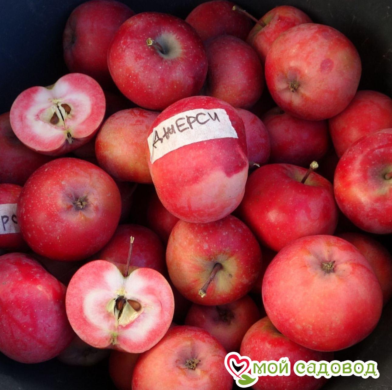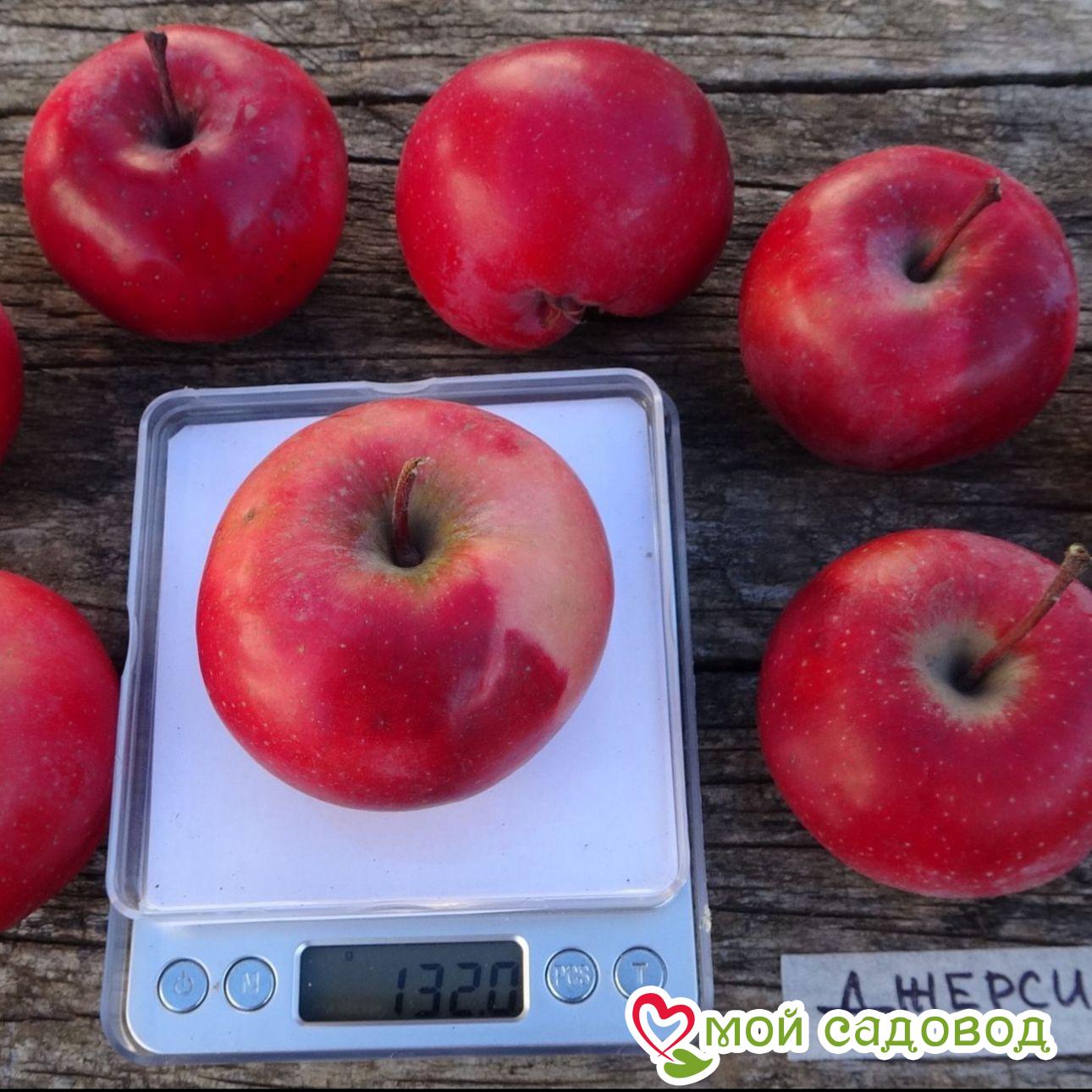 Мякоть малинового цвета, плотная, хрустящая, очень сочная, с неповторимым кисло-сладким вкусом, тонким ароматом, лёгкой приятной терпкостью. Исходя из срока потребления плодов, яблоня Джерси — осенний сорт. Плоды осенних сортов собирают в конце сезона и потребляют, в основном, в осенний период. У части сортов яблоки достигают наилучшего вкуса и аромата (потребительской зрелости) только после непродолжительного хранения. Яблоки осенних сортов в подходящих условиях (например, температура 0…+4°С, влажность 90…95%) могут оставаться свежими несколько месяцев — вплоть до зимы. Урожайность высокая. Морозостойкость и устойчивость к заболеваниям хорошие. Съёмная зрелость плодов наступает в начале октября, а храниться они могут до января. Плодоношение регулярное. Для яблонь сорта Джерси характерны плоды массой до 190 грамм, в среднем около 175 грамм, т.е. яблоки выше среднего размера. В нашем интернет-магазине вы сможете купить Саженцы яблони Так же возможно вас заинтересуют Яблоня Джонатан и Яблоня Старк эрлиест