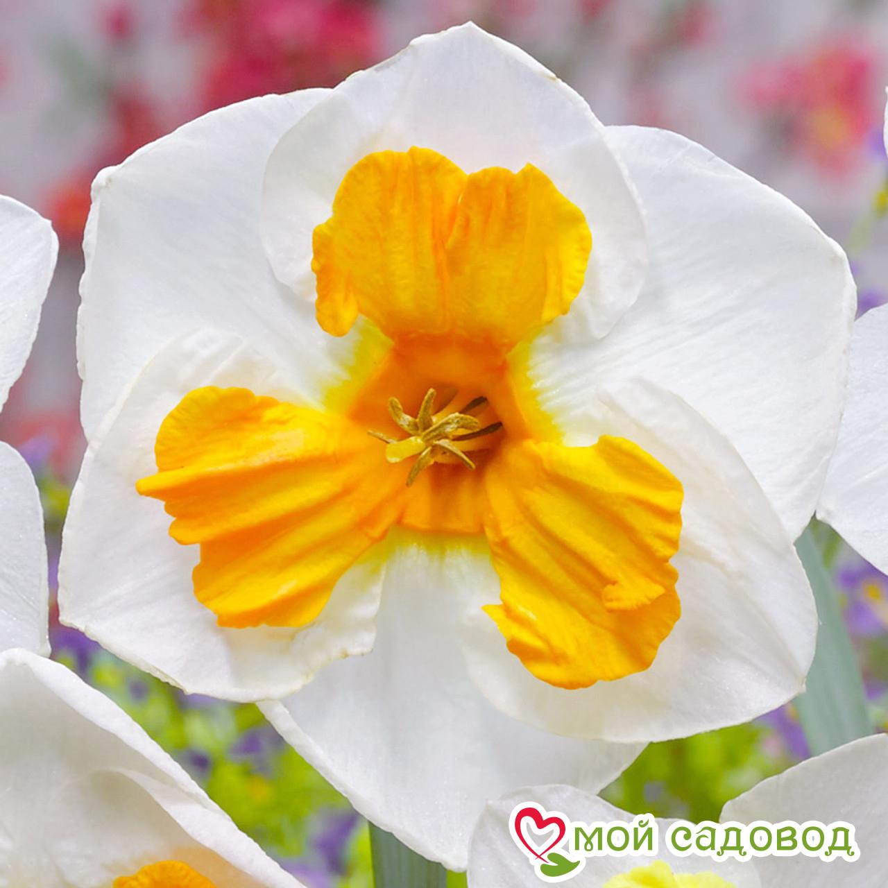 Нарцисс махровый Триколлет — эксклюзивный представитель раннецветущих весенних растений с неповторимым нежным ароматом. Коллекционный сорт напоминает цветок орхидеи, чьи лепестки окрашены в белоснежный оттенок и дополнены оранжевой коронкой, похожей на пропеллер. Декоративная культура подходит для выращивания под срезку, для высадки в контейнеры, рабатки, на клумбах и газонах. В нашем интернет-магазине вы сможете купить Нарцисс Так же возможно вас заинтересуют Нарцисс Арт Дизайн и Нарцисс мини Сан Диск .